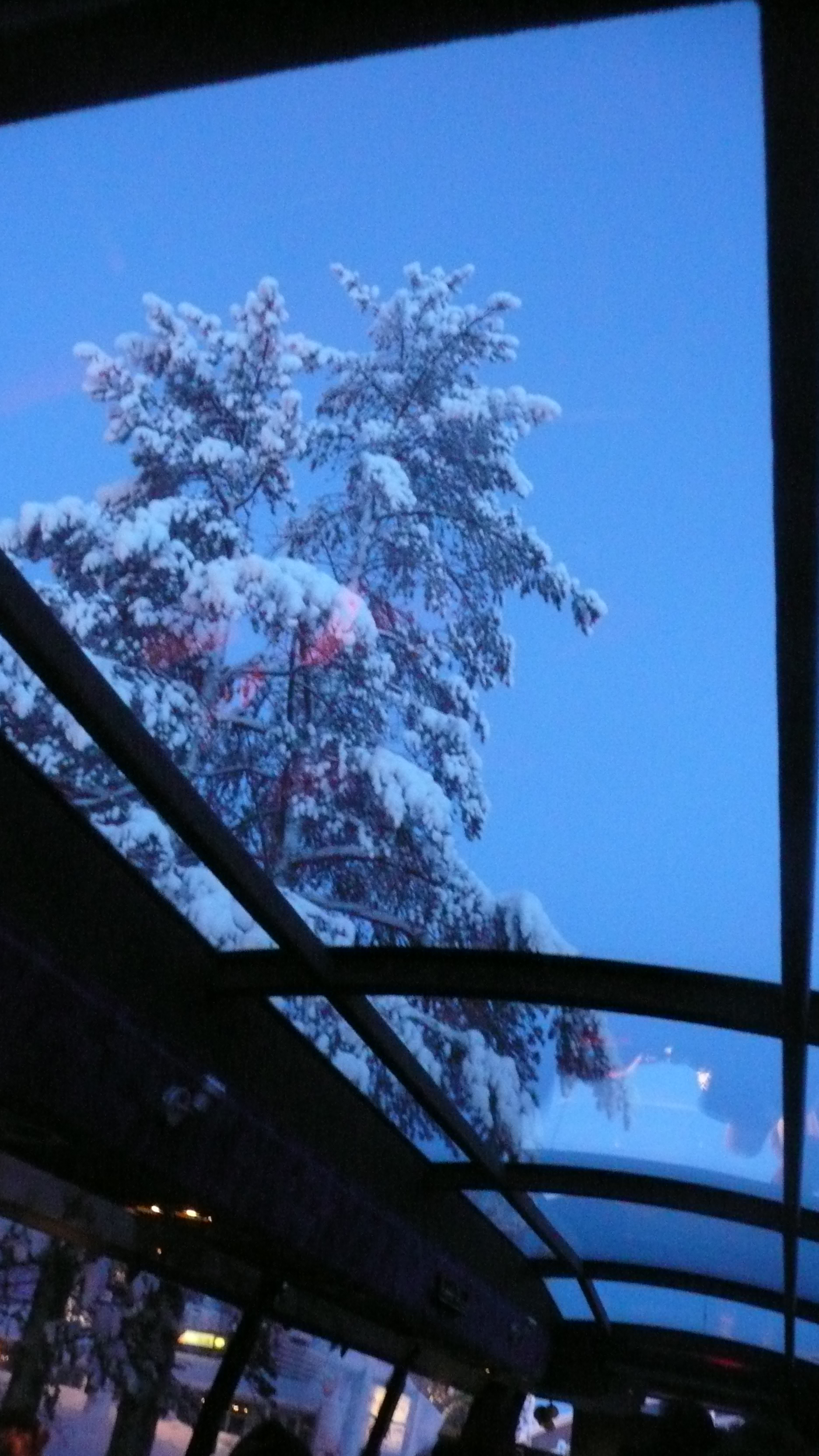 | Le car qui nous emmena à la ferme "du père Noël" était équipé de vitres à son toit. |