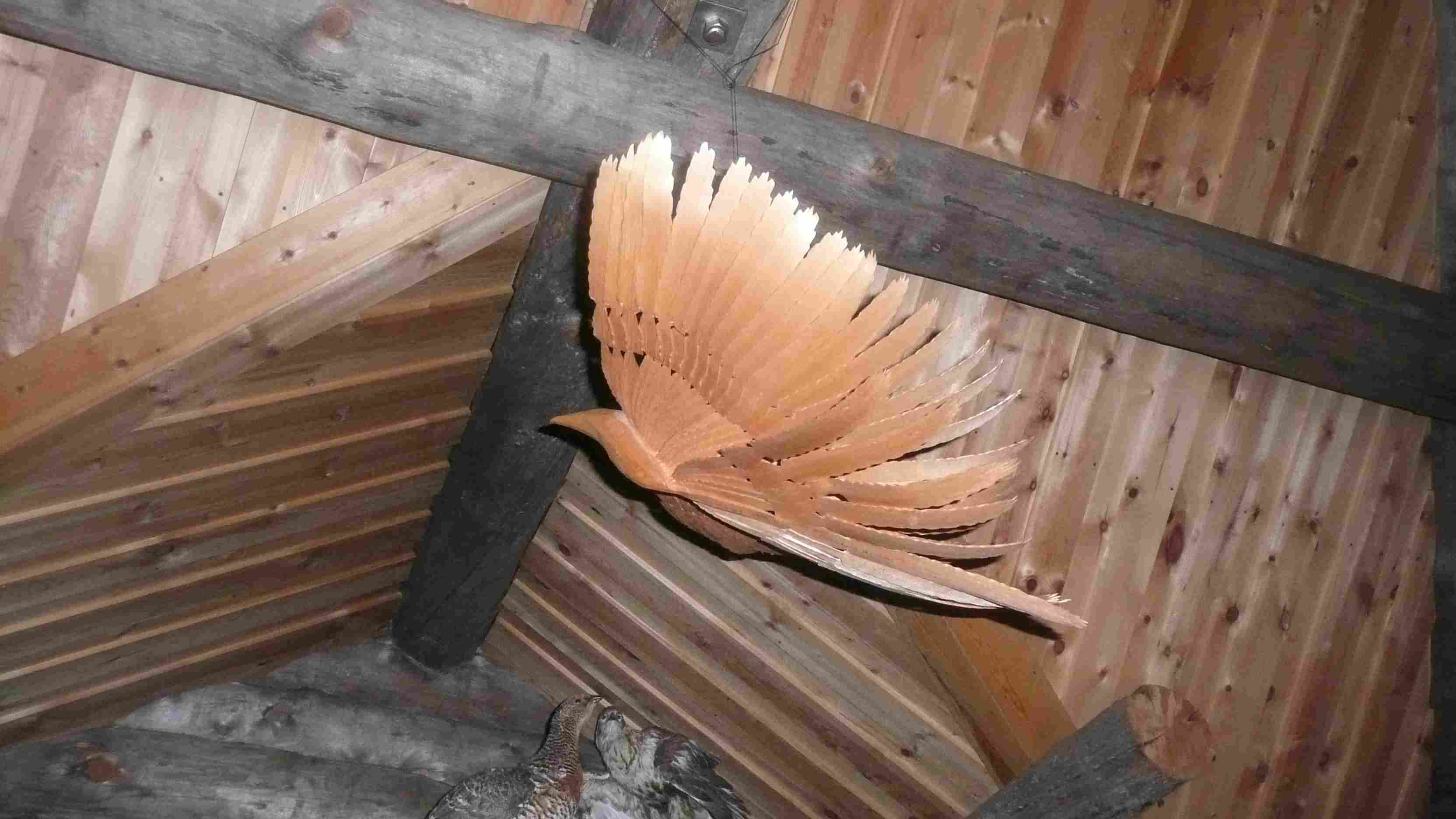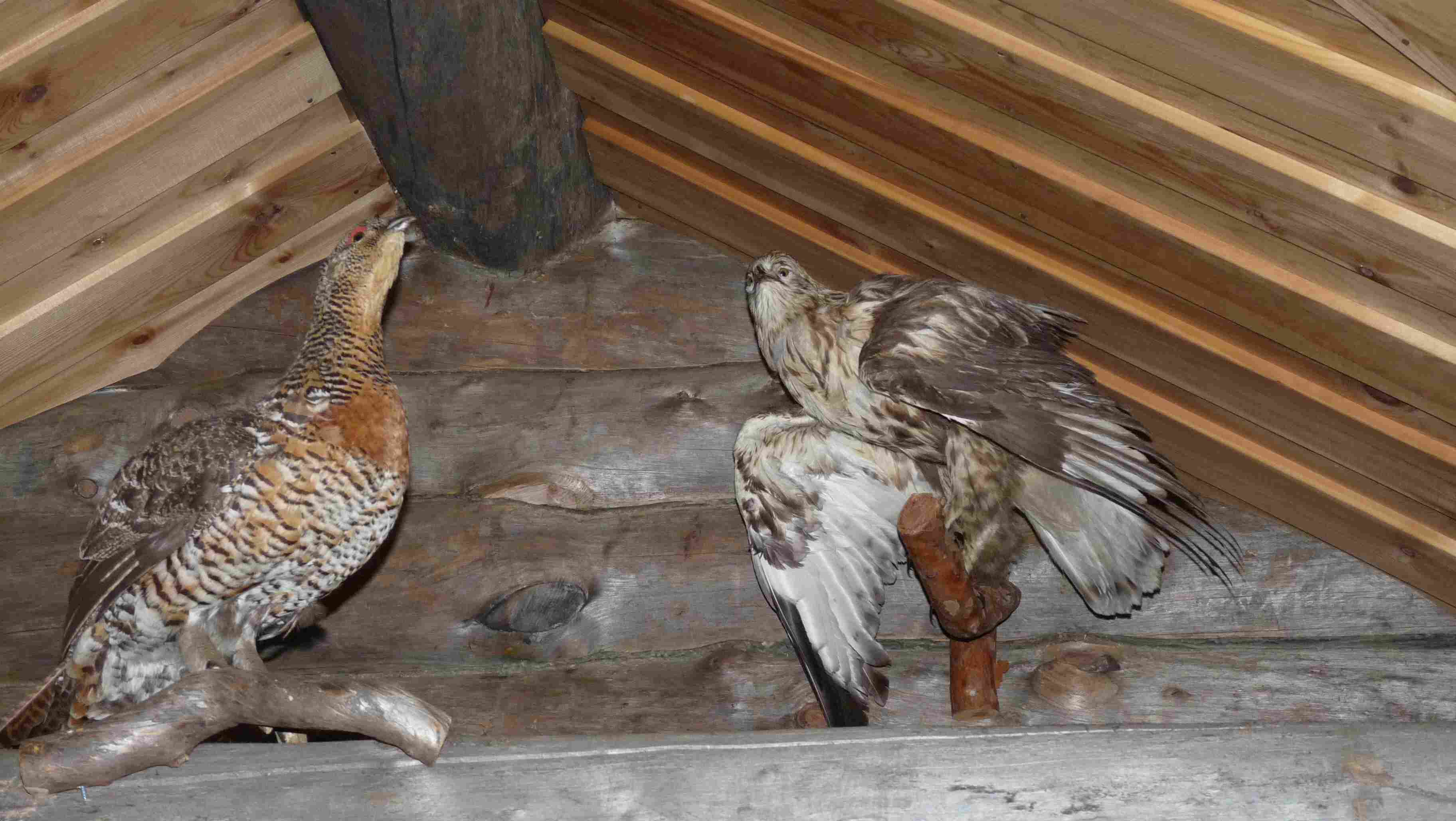 | Décorations empaillées traditionnelles de l'intérieur de la kota : perdrix et aigle |