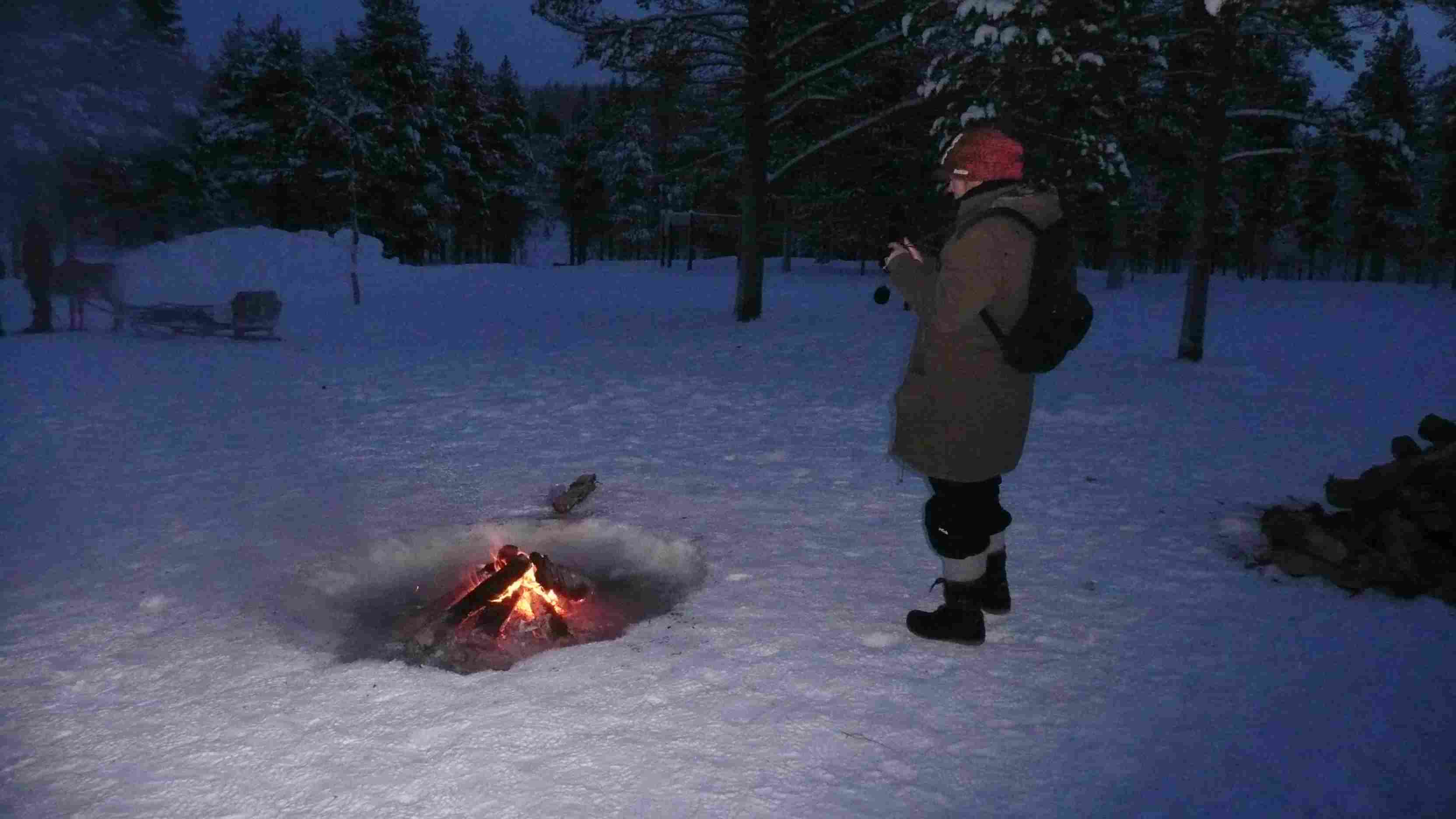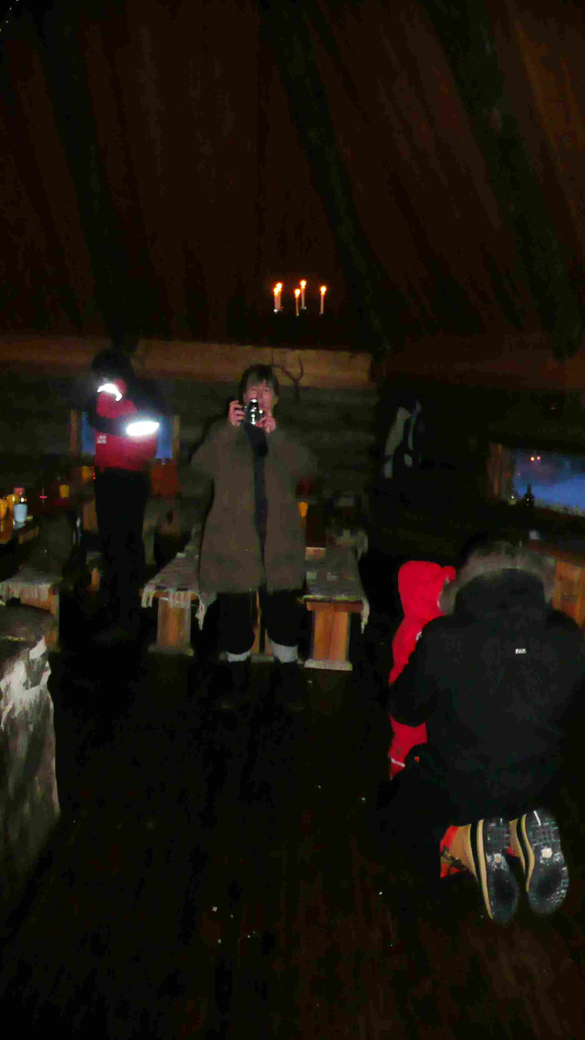 | Sur la gauche, la kota principale, sur la droite un feu pour nous réchauffer. |