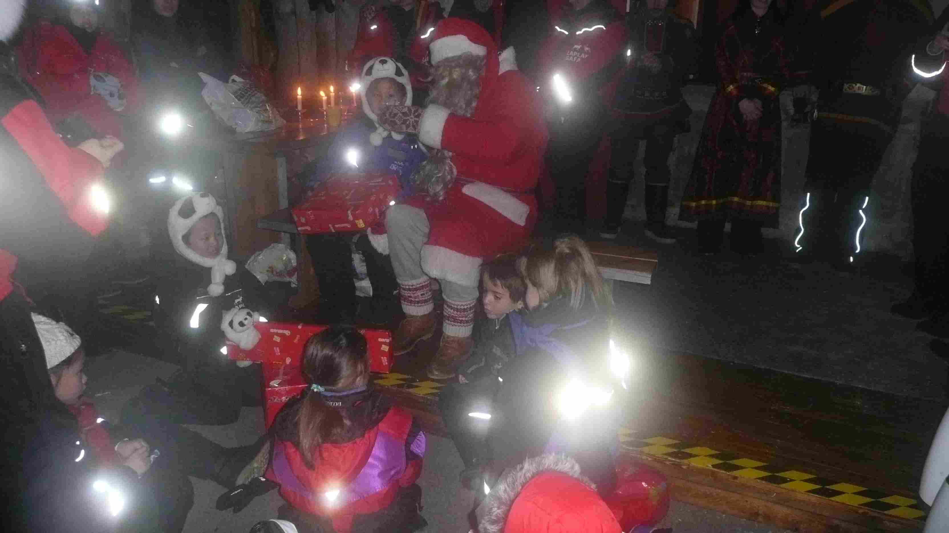 | Les enfants devant le Père Noël, des paillettes plein les yeux (et sur la photo) ... |