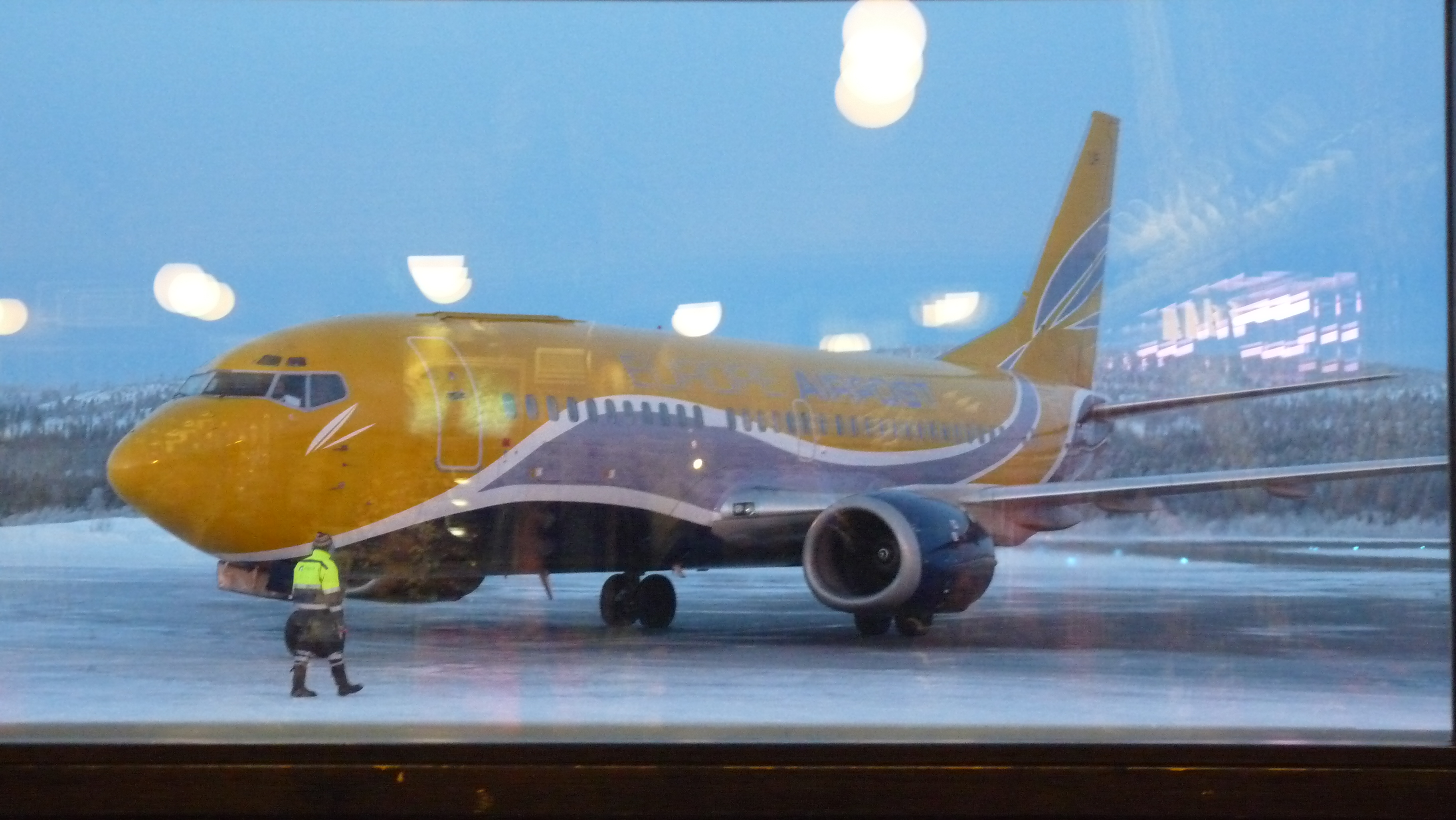 | Notre avion (AirPost) mit quelques temps à se faire préparer, à cause de la température ... |