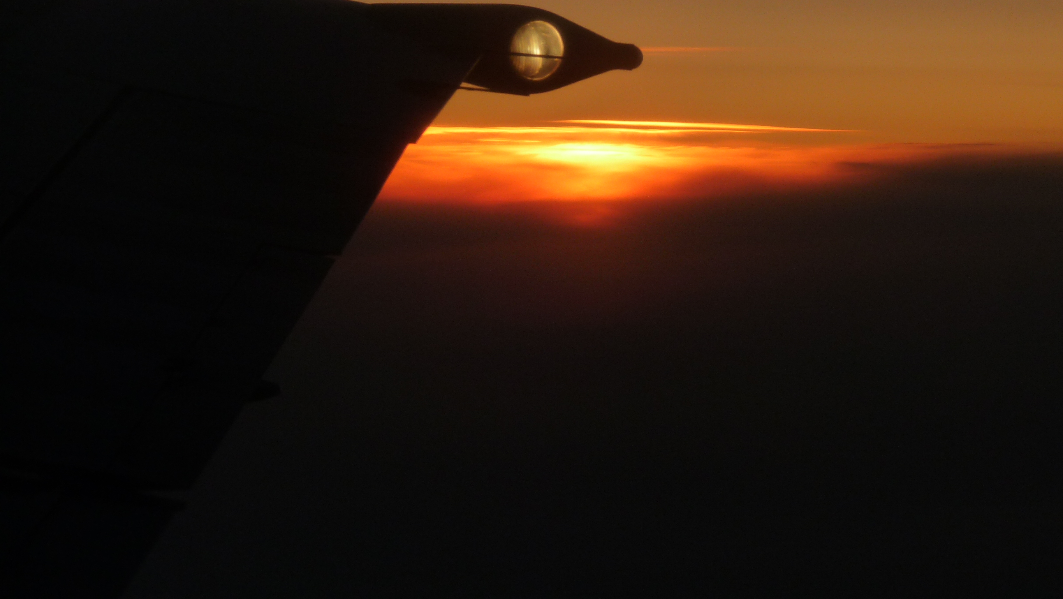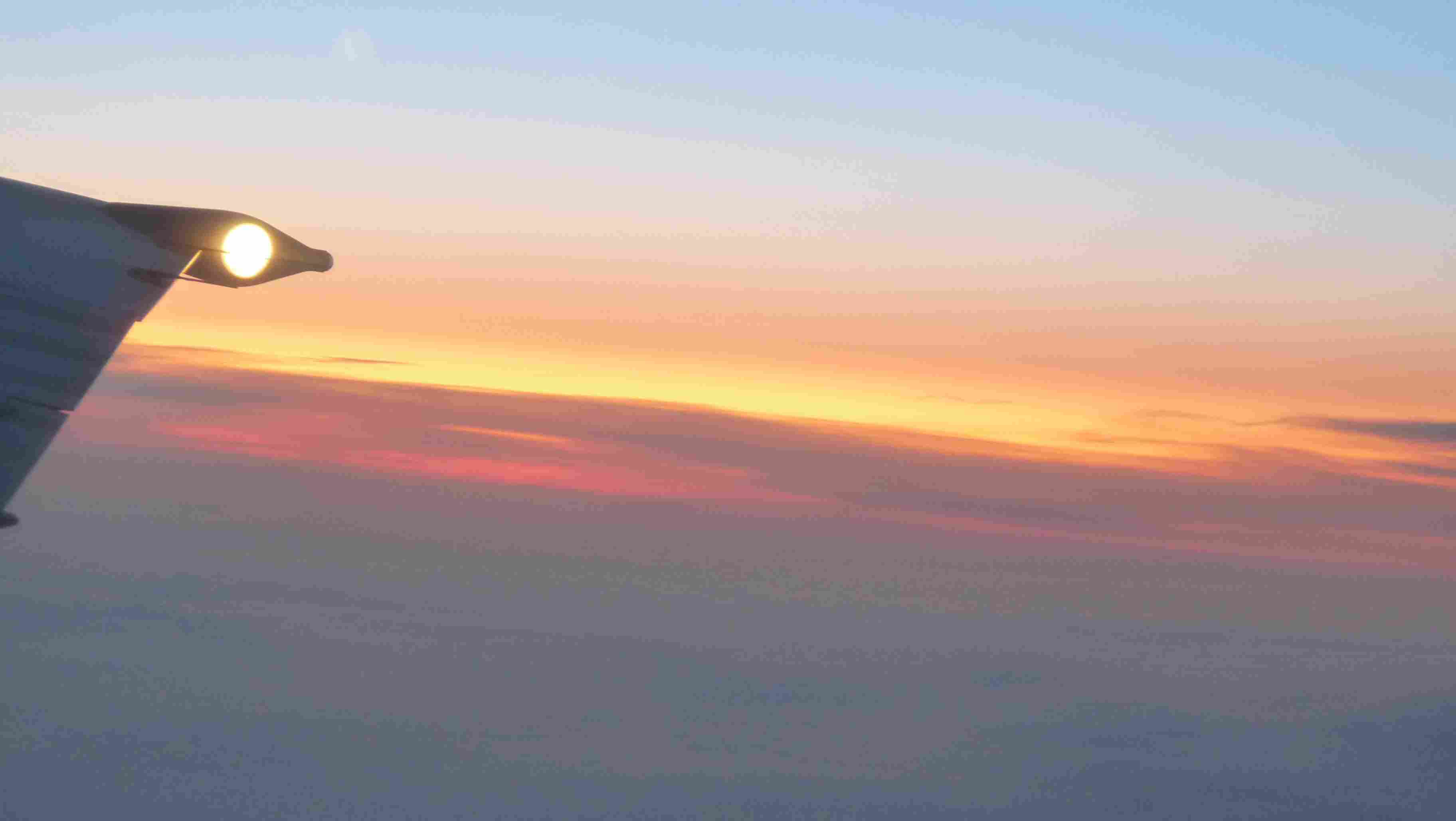 | dernier lever du soleil de notre séjour - vu d'avion |