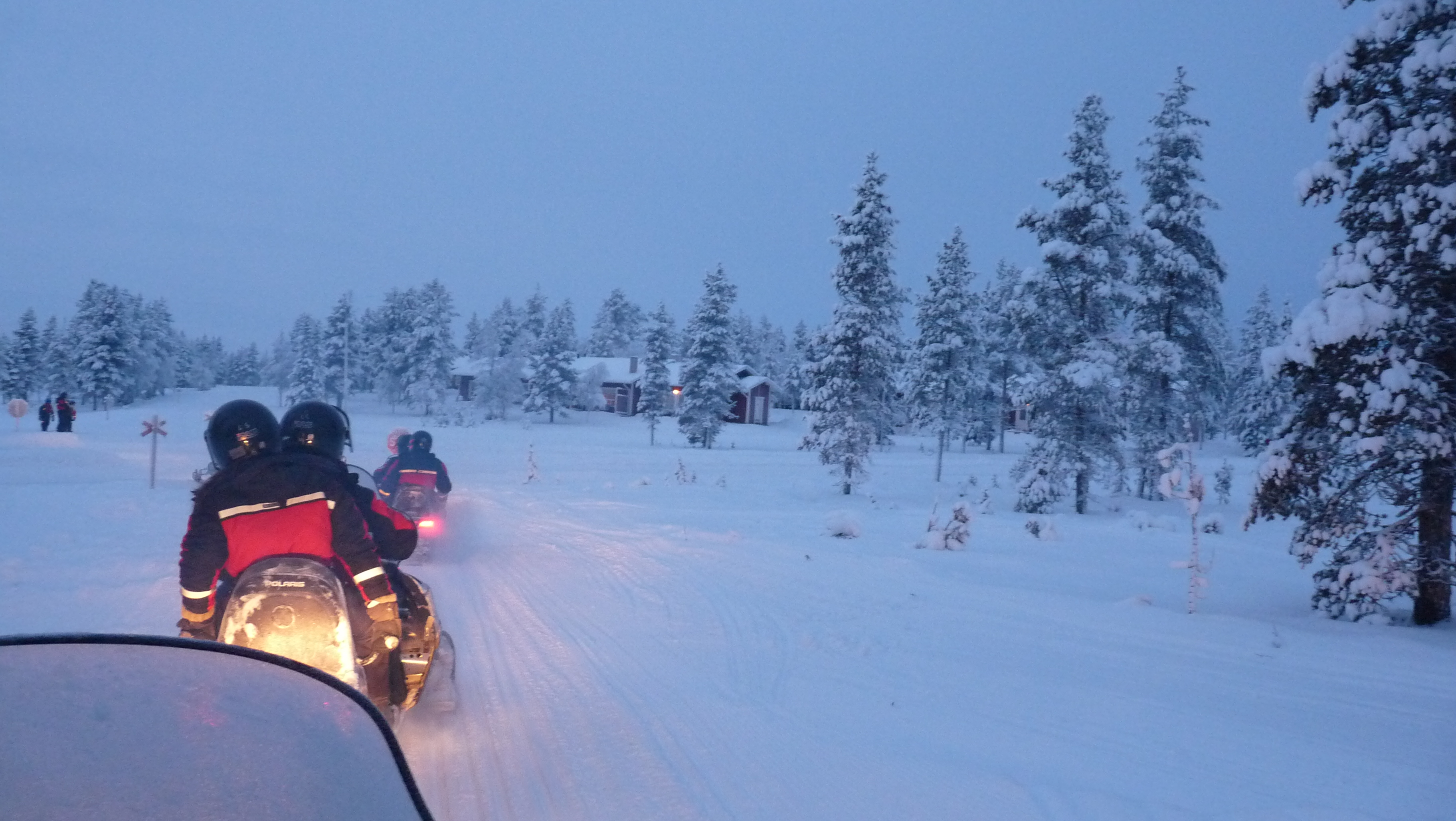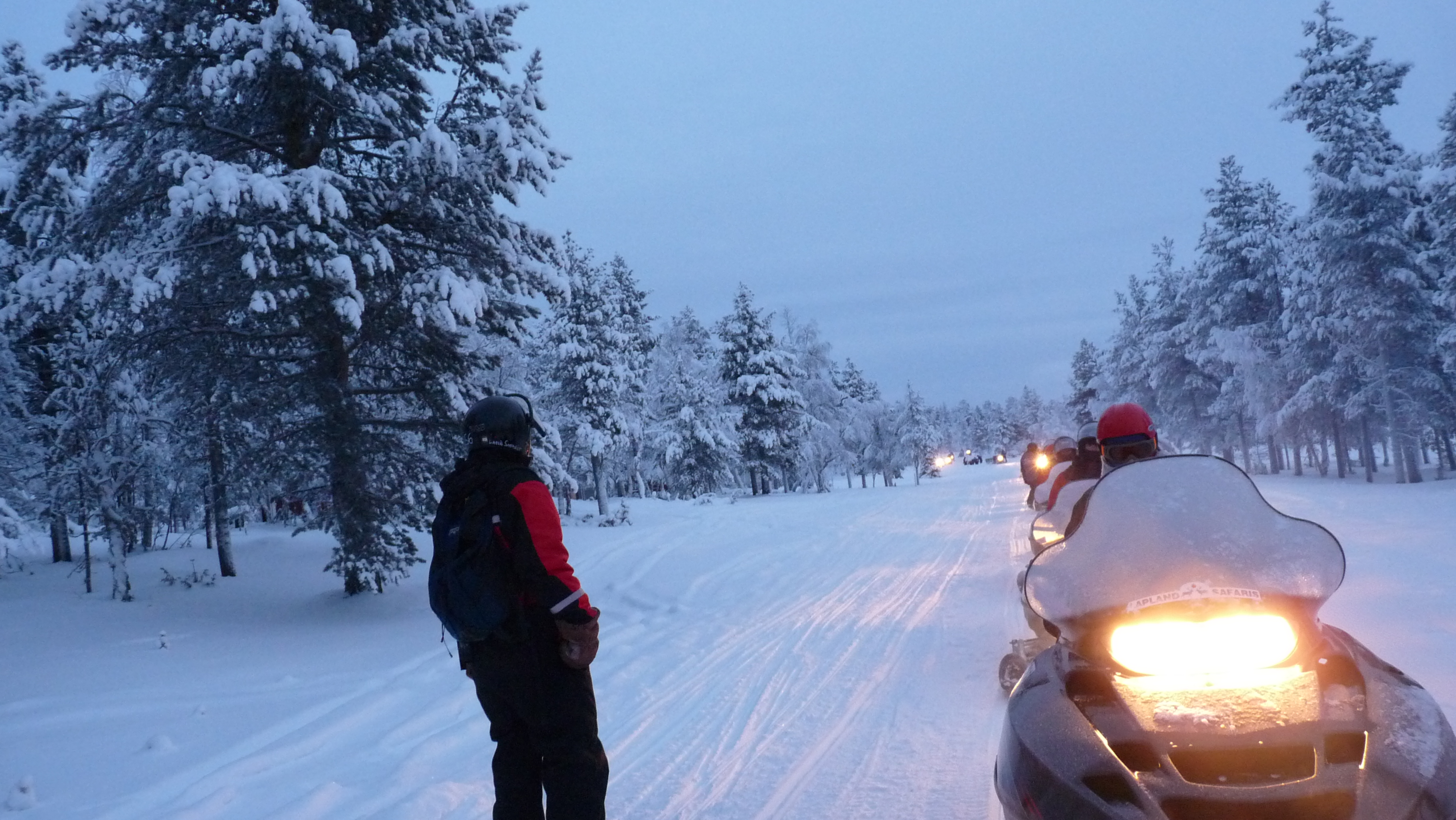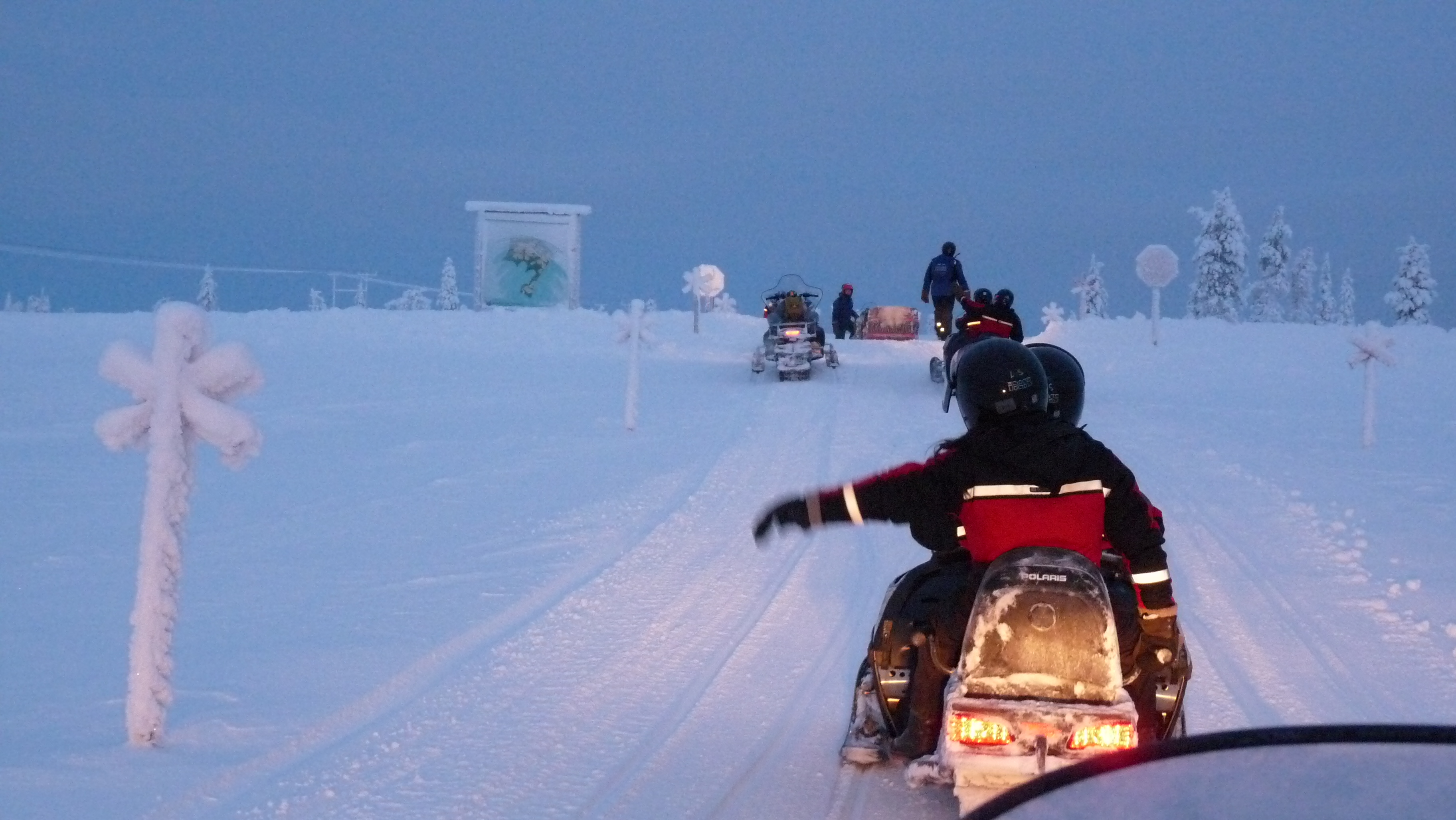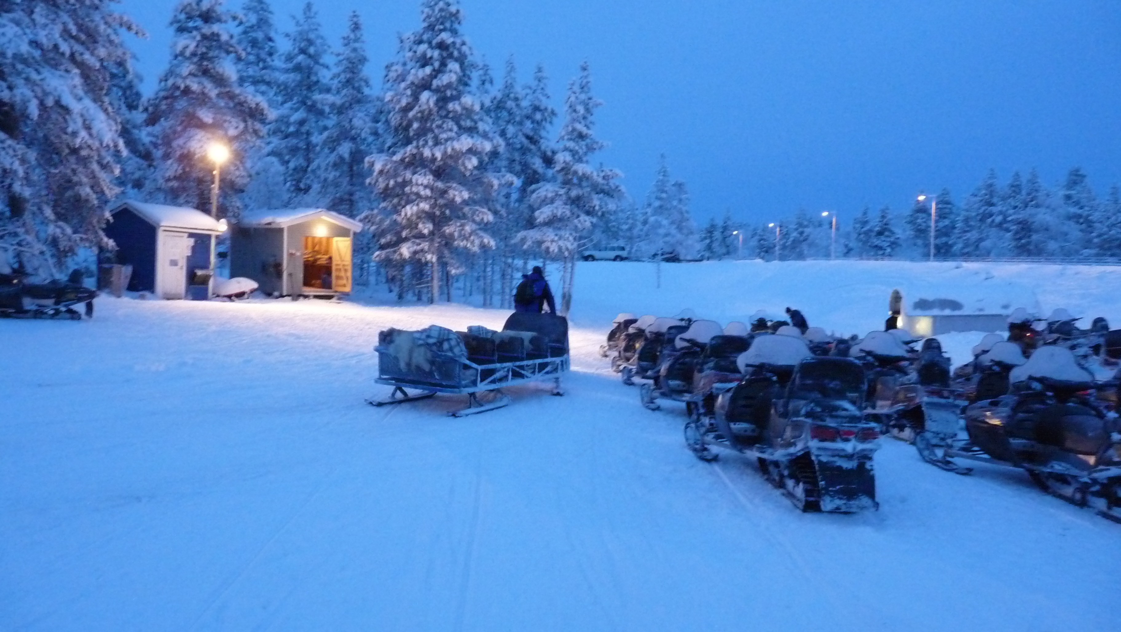 | La "troupe" s'achemine vers le magasin ou seront remis cagoules et casques pour la motoneige |