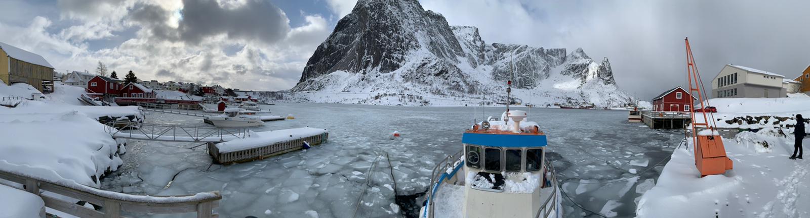 | Reine - port de plaisance : la glace a emprisonné les bateaux | |