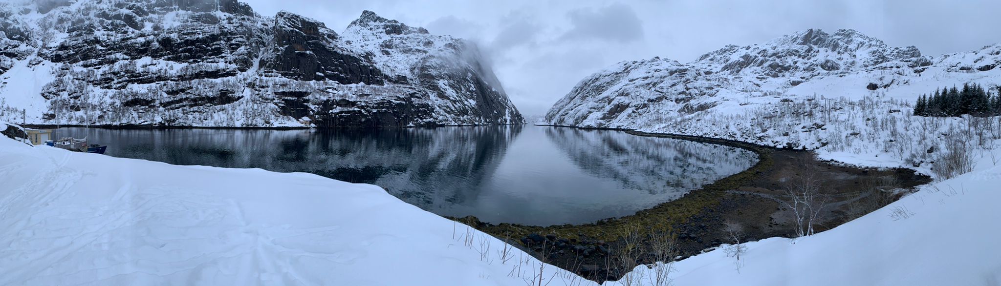 | Lors de la balade en raquettes au Trollfjord : le fjord | |
